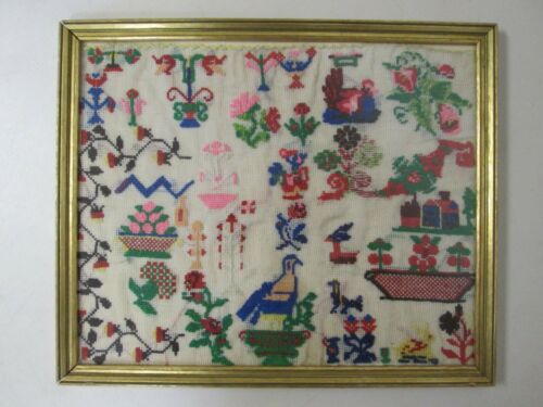 Title (ebay affiliate link): FRAMED UNDER GLASS EARLY AMERICANA ANTIQUE BERLIN HAND WORK