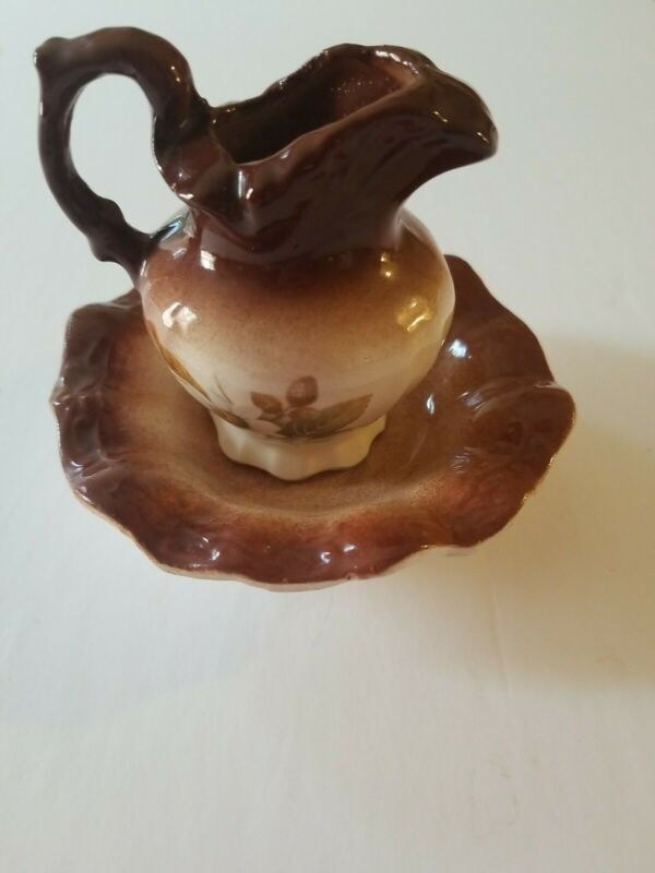 Vintage Brown Victorian Style Toy Wash Basin Bowl and Pitcher set Free Shipping
