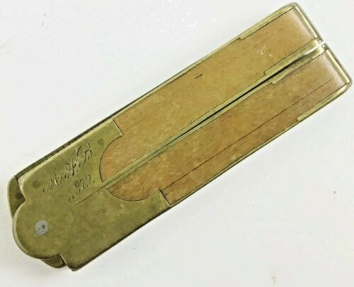 1879 Brass and Wood Fold Up Ruler ~ Monogrammed M A B 1879
