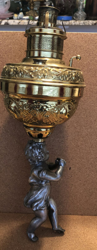 19 c B & H Banquet Parlor Oil Lamp Figure Cherub Angel Child