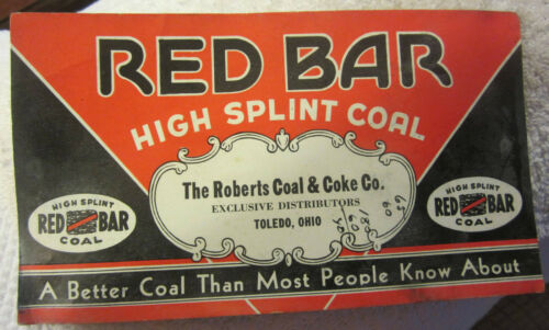 Vintage antique Toledo Ohio Roberts Coal & Coke Co ink blotter,ad,Red Bar splint