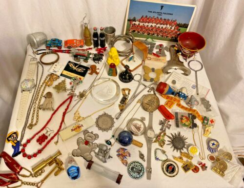 Title (ebay affiliate link): Vintage Junk Drawer Lot ~ jewelry Coca-Cola pins & assorted Good stuff