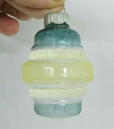 Vtg SHINY BRITE Unsilvered WWII Atomic Christmas Ornament 2" Aqua, Yellow, White