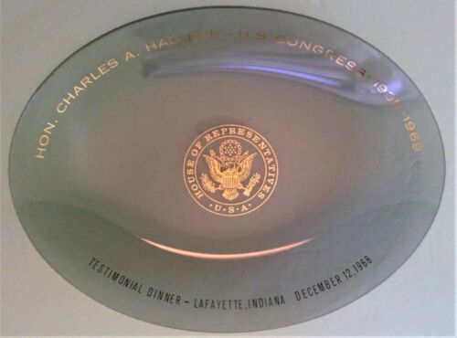 Title (ebay affiliate link): Rare 1968 Hon. Charles A. Halleck Indiana Smoked Glass Testimonial Dinner Dish