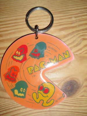 Title (ebay affiliate link): RARE- Vintage Pacman Keychain dated 1980 3.25in diam