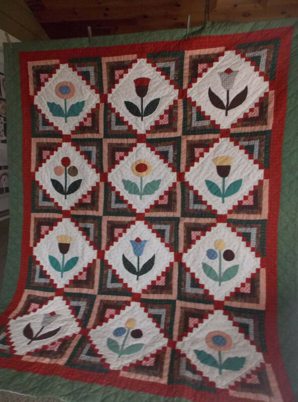 Title (ebay affiliate link): Sampler Quilt, Primitive Look, Log Cabins and Appliqued Flowers