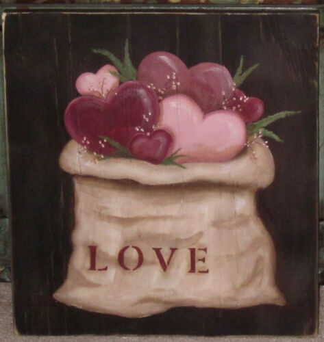 Title (ebay affiliate link): *~*PRIMITIVE*~* HP FOLK ART PRIM VALENTINE SACK *~* HEARTS *~* RECLAIMED WOOD