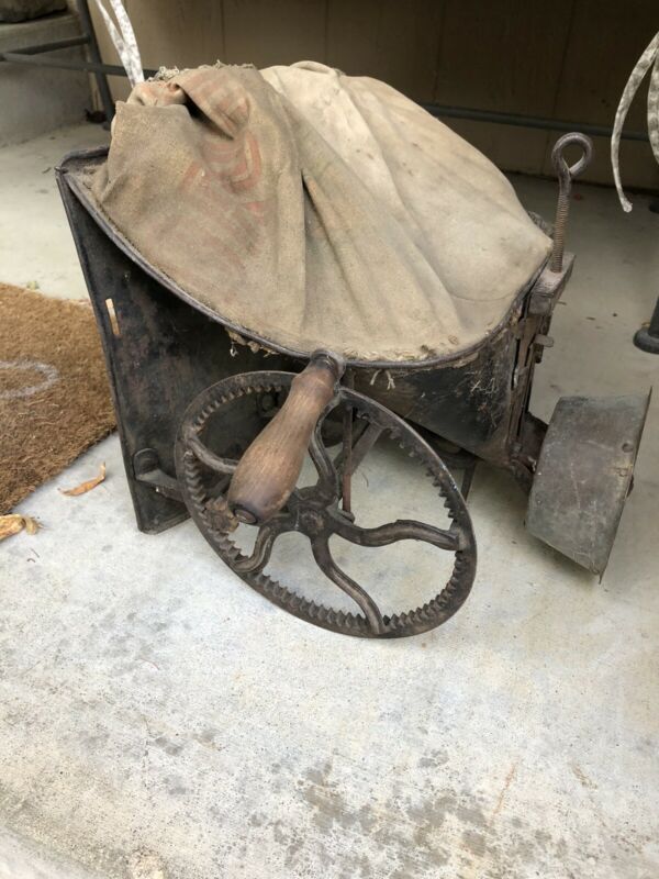 Title (ebay affiliate link): Antique Vintage Rustic Hand Crank Seed Spreader With Seed bag Farm Tool