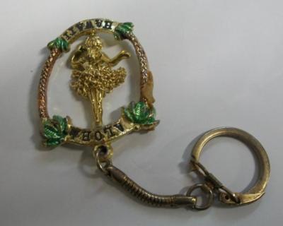 VINTAGE 1960'S RARE HULA GIRL GOLD KEYCHAIN COLLECTIBLE