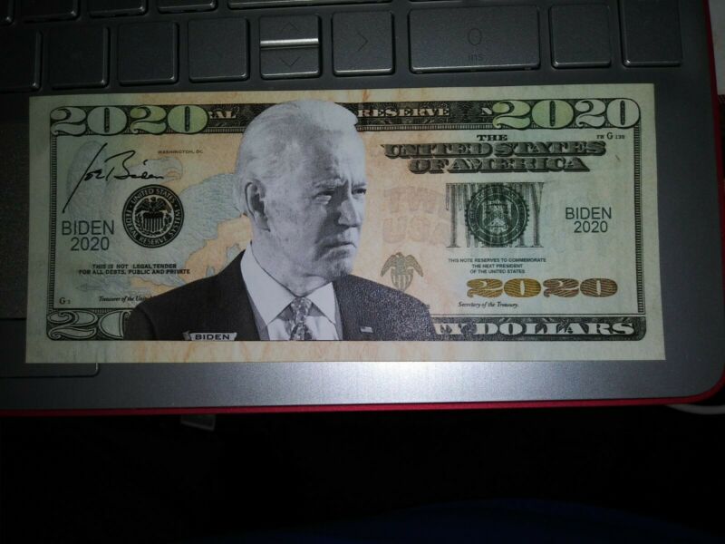 Title (ebay affiliate link): 2 JOE BIDEN $2020 BILL (LOOKS AND FEELS REAL) FAKE MONEY