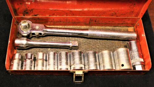 Vintage P&C 1/2 Inch Drive 100 Series 13 Piece Socket Set Metal Case MADE IN USA