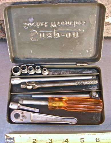 VINTAGE SNAP-ON TOOLS "MIDGET", 1/4" dr, 11-pc. SOCKET WRENCH SET W/METAL CASE