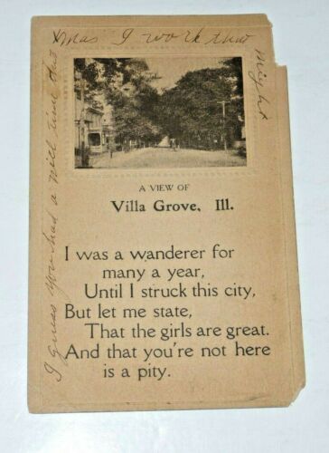 Title (ebay affiliate link): Vintage Antique Villa Grove Illinois IL Postcard Street Scene Embossed