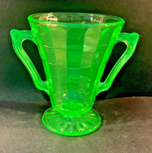 Title (ebay affiliate link): Vintage Anchor Hocking Block Optic Green Uranium Handled Sugar