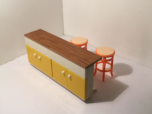 Vintage Tomy Dollhouse Furniture Counter or Bar & 2 Bar Stools #87