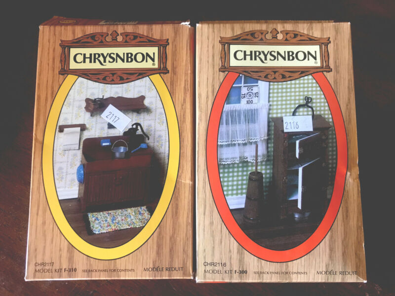 Lot of 2: VINTAGE CHRYSNBON WOOD DOLLHOUSE FURNITURE ~ KITCHEN ~ BATH NEW In Box