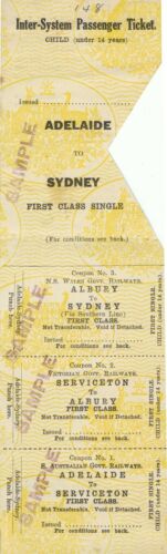 Title (ebay affiliate link): Railway tickets SAR VR NSWGR Adelaide to Sydney first class single unused