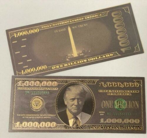 Title (ebay affiliate link): Donald Trump $1MIL BLACK AND GOLD Commemorative Bank Note