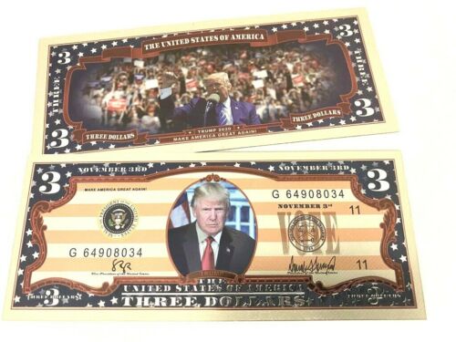 Title (ebay affiliate link): Vote For Trump 2020 Keep America Great $3 Dollar Bill Commemorative Bank Note