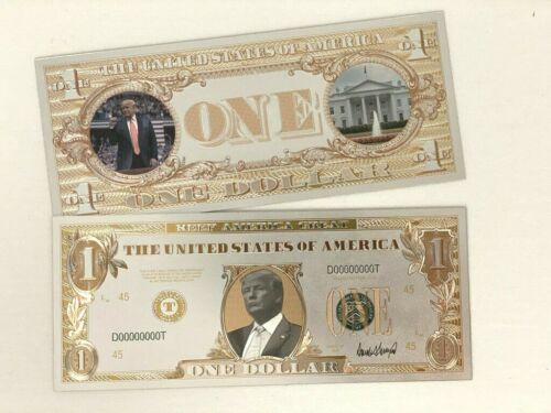 Title (ebay affiliate link): Donald J Trump $1 Dollar White Gold KAGA Commemorative Collectable Bank Note