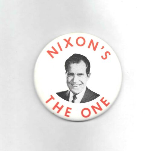 Title (ebay affiliate link): 3" Original Issue Photo Campaign Button 1968 RICHARD NIXON "NIXON''S THE ONE"