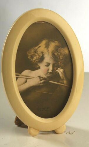 Vintage oval frame. Cream Bakelite 5" x 3 1/4" easel frame.