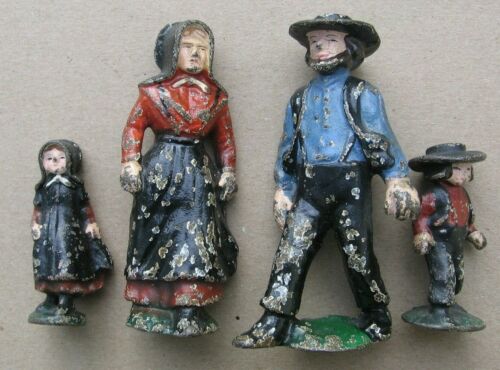 Antique Americana Toy Cast Iron Amish Attire Pioneer Farm Family Figures