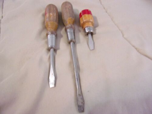 LOT 3 OLD WOOD HANDLE SCREW DRIVERS