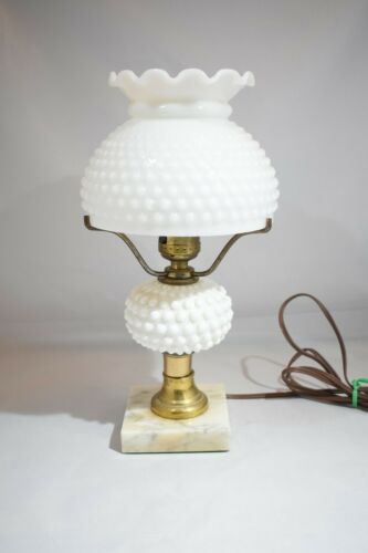 VINTAGE FENTON MILK GLASS LAMP, ELECTRIC, MARBLE BASE