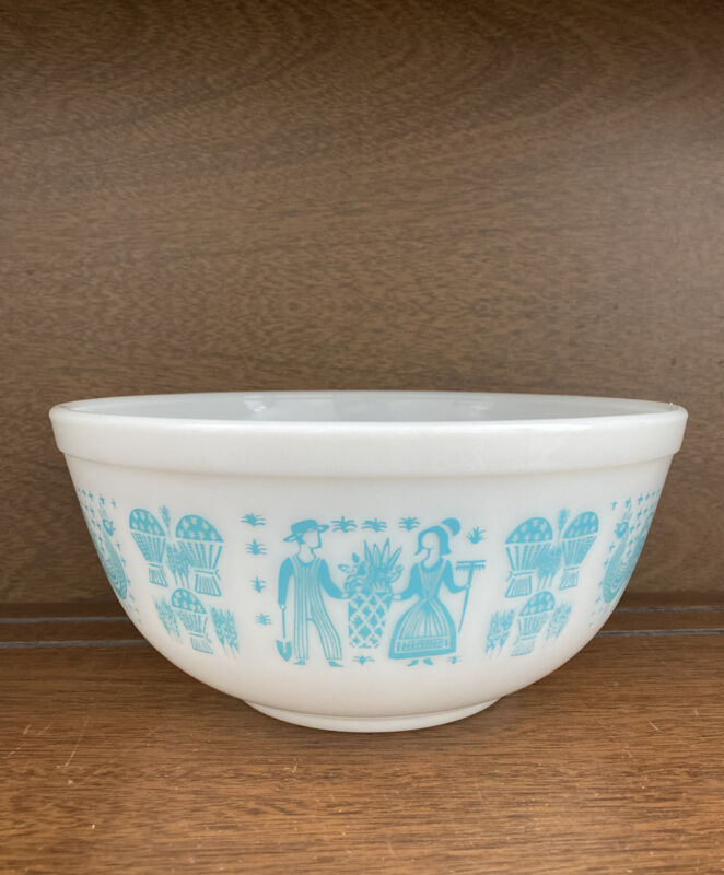 Title (ebay affiliate link): VTG Pyrex Ovenware Amish Butterprint 2.5qt Mixing Bowl- Turquoise On White #403