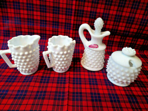 Title (ebay affiliate link): Lot Of (4) Fenton Hobnail Milk Glass - Creamer & Sugar - Cruet - Mustard Pot