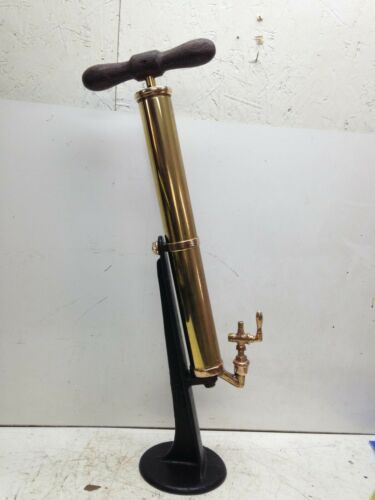Title (ebay affiliate link): Vintage Joseph Posch #3 Long Brass Hand Air Pump Cast Iron Base Wood Handle