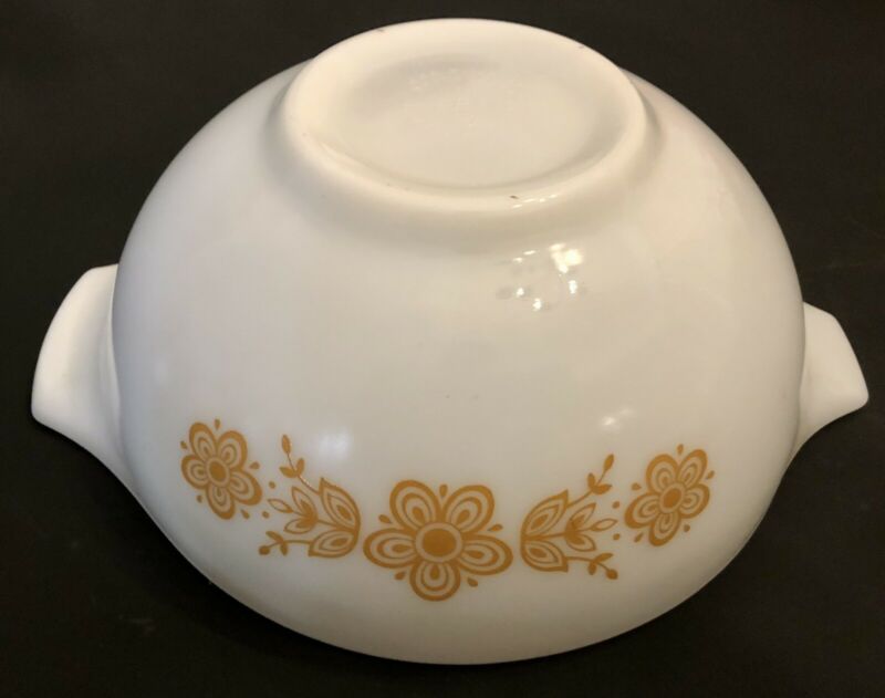 Title (ebay affiliate link): 443 Vintage PYREX BUTTERFLY Gold White CINDERELLA Mixing Nesting Bowl 2.5 Qt
