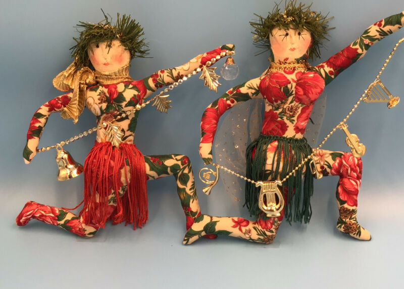Handmade Primitive Folk Art Christmas Dolls Elf Pixie Dancer Poinsettia OOAK