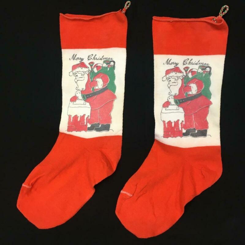 Title (ebay affiliate link): 2 GREAT VINTAGE 1920s PRINTED CHRISTMAS CANDY HOLDER STOCKINGS - SANTA WITH TOYS