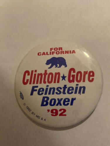 Title (ebay affiliate link): 1992 Clinton Gore Feinstein Boxer Coattail For California Pinback Button--2 1/4