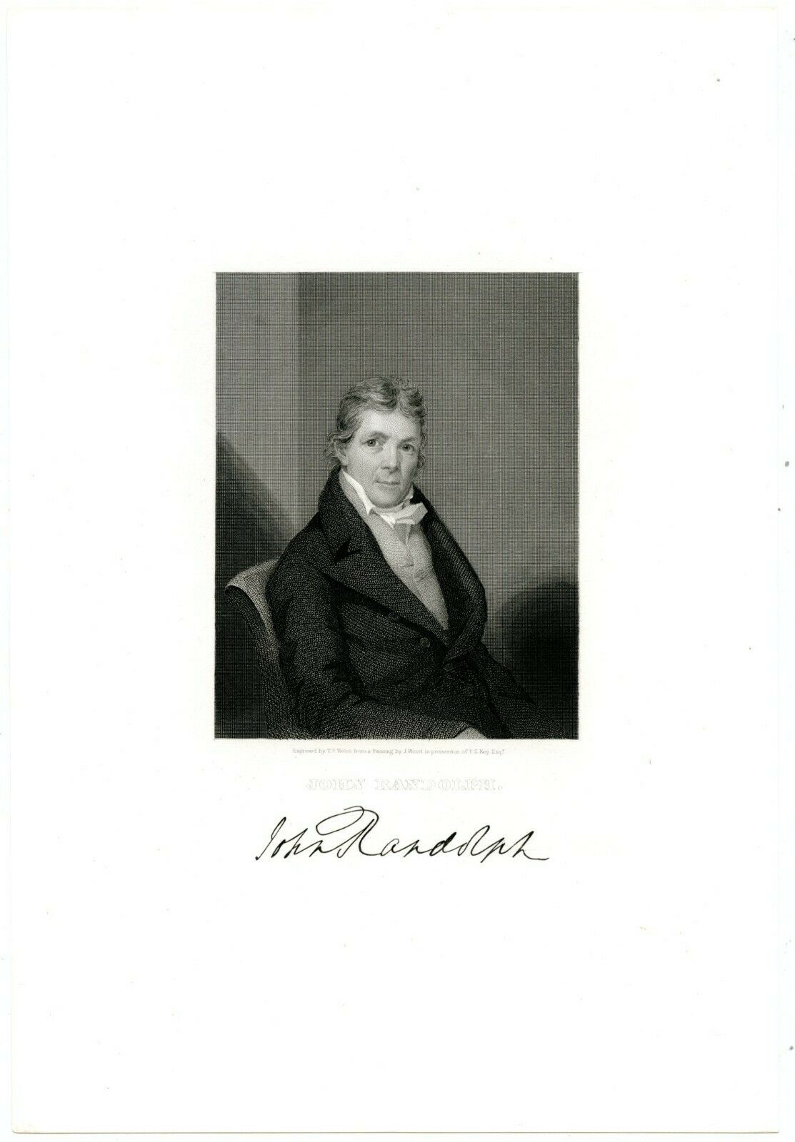 JOHN RANDOLPH OF ROANOKE, Virginia Senator & Congressman, Steel Engraving 8706