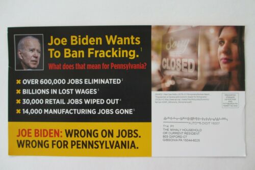 Title (ebay affiliate link): Trump 2020 Political Campaign Postcard-PA Dist.-Joe Biden Wants To Ban Fracking