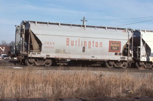Title (ebay affiliate link): Orig Slide CB&Q Burlington Route ACF 2970 CUFT Hopper #184340 Eola IL 1984