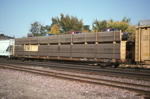 Title (ebay affiliate link): Orig Slide TTBX Trailer Train 89'' Open Autorack #963103 in 1989 w/L&N Rack