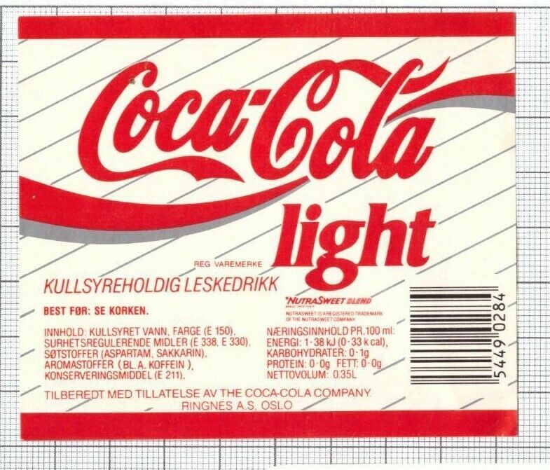 Title (ebay affiliate link): NORWAY Ringness AS Oslo Coca Cola Light lemonade label C2384 044