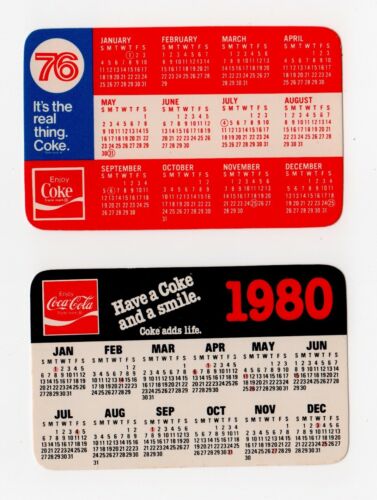 2 Coca Cola Pocket Calendar - different years 1976, 1980