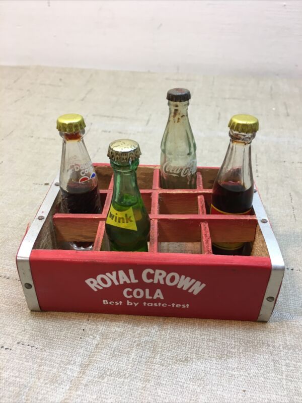 Title (ebay affiliate link): 4 Mini Glass Soda Bottle Lot 3 Inch With Wooden Crate
