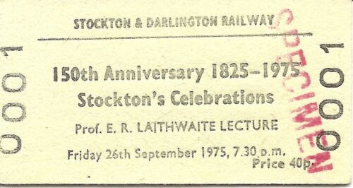 Title (ebay affiliate link): Edmondson Ticket - Stockton & Darlington 150th Anniversary - Laithwaite Lecture