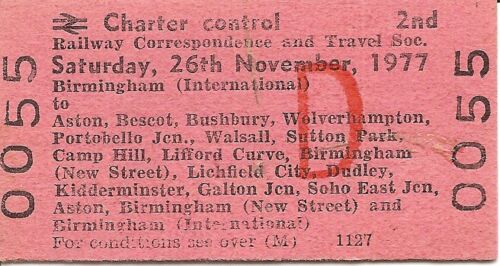 Title (ebay affiliate link): B.R.B. Edmondson Ticket - R.C.T.S. Birmingham Reunion Rail Tour 1977