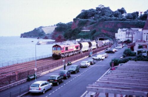 Title (ebay affiliate link): 35mm SLIDE+ COPYRIGHT BR DIESEL CLASS 66 246 DAWLISH 2004 FREIGHT TRAIN SEA SIDE
