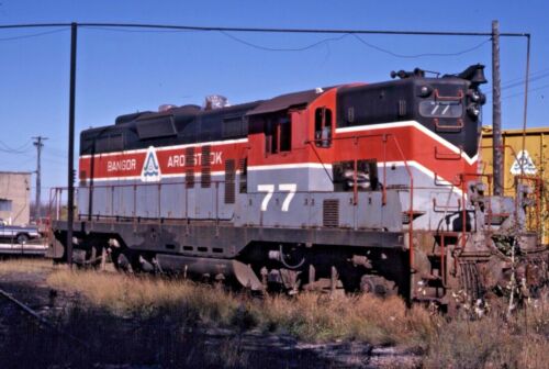Title (ebay affiliate link): ORIGINAL KODACHROME BANGOR & AROOSTOOK GP-9 # 77 NORTHERN MAINE JCT, ME 1987