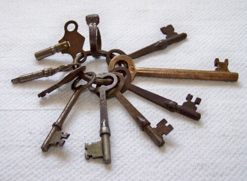 Title (ebay affiliate link): Antique 1800s Sewing Machine Clock Square Nail Applied Bit Branded Skeleton Keys