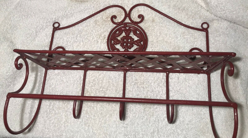 Vintage Bathroom / Any Room RED Metal Wall Towel Holder Hanging Shelf T