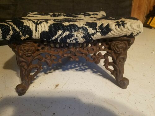 Title (ebay affiliate link): 11 1/2" by 11 1/2" by 6 1/2" VINTAGE ORNATE CAST IRON FOOT STOOL/OTTOMAN